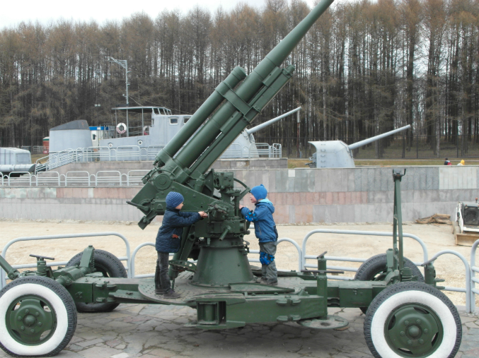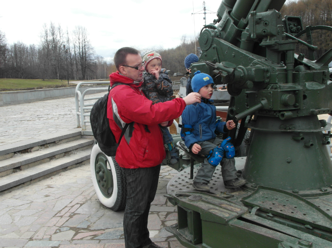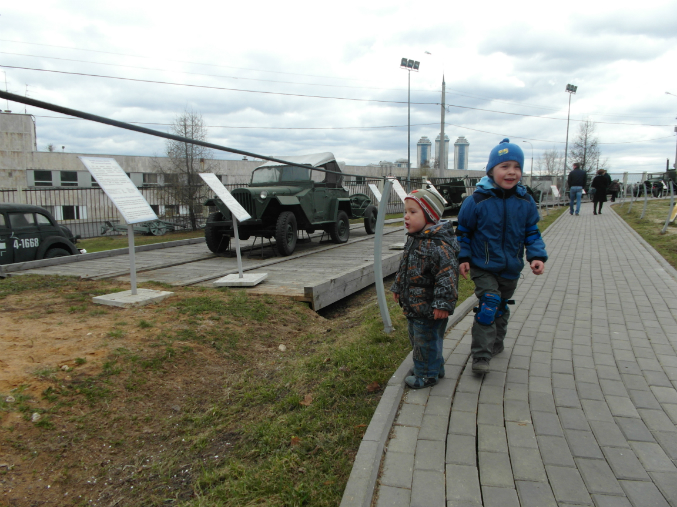 Внимание мальчишек привлекли силуэты поездов и танков, поэтому отправились мы сразу ко входу в музей боевой техники.