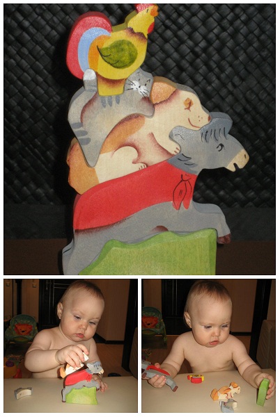 Можно строить забавную пирамидку, а можно играть каждой фигуркой отдельно, развивая речь ребенка. Например, использовать для закрепления предлогов «на» и «под».