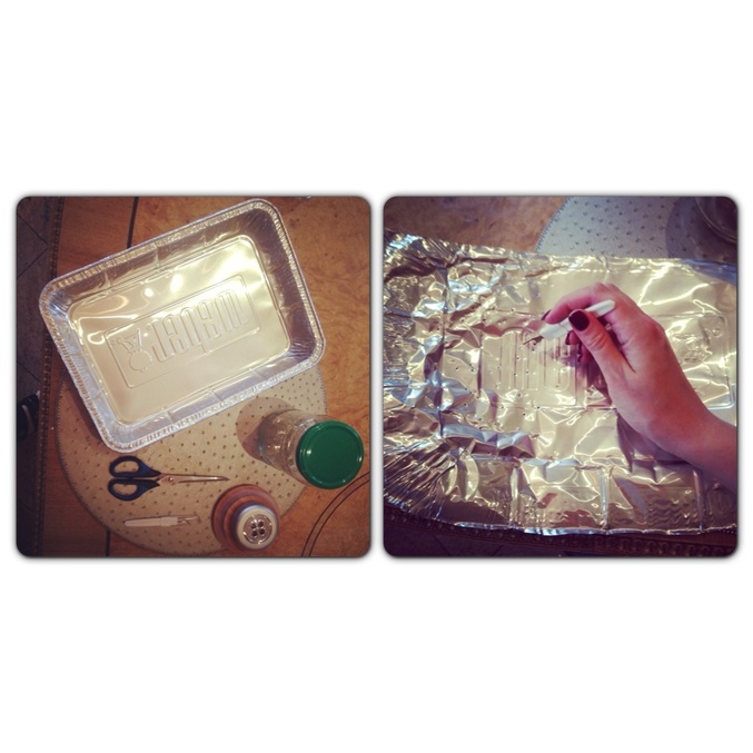 Плотная фольга, банка с прямыми стенками, и самое главное - диодная лампочка на батарейках, они продаются в хозяйственных. Ножницы, шило.