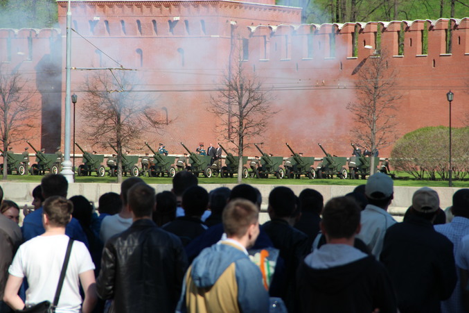 Блин, я думала я уписаюсь оглохну)))) Это очень громко!!!! Алешка не понял то ли бояться (это была его первая реакция) то ли кричать УРА!!! как все остальные, и сумасшедшая мамашка которая бегала вокруг него и кричала чтоб не боялся и это всего то пушки)))) Пушки отгремели а мы еще вот такие сидим, голову прижав к плечам))))