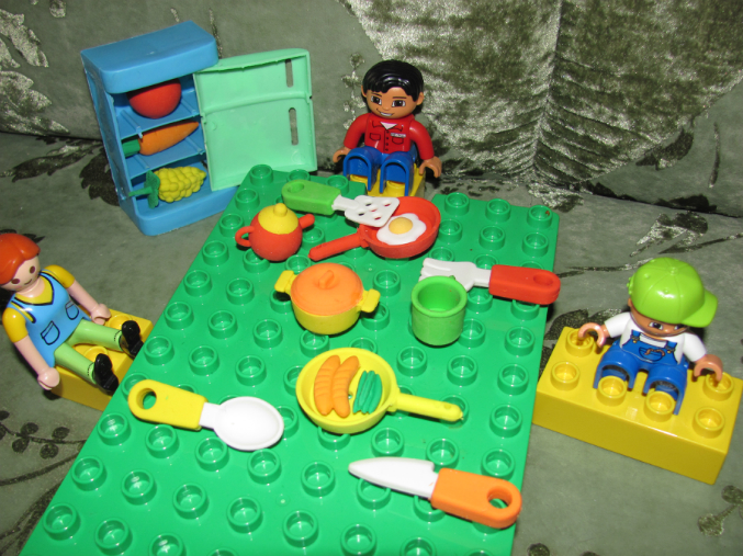 Мы тоже в лего обычно вместе играем, строим. С готовыми постройками сын может и один посидеть, а вот продукты нас увлекли, видимо, надолго, каждый день играет. Сейчас правда игра состоит не только всех гостей накормить, но и всю посудку и продукты разобрать, хорошо из них все достается и собирается. Так что удачи!
