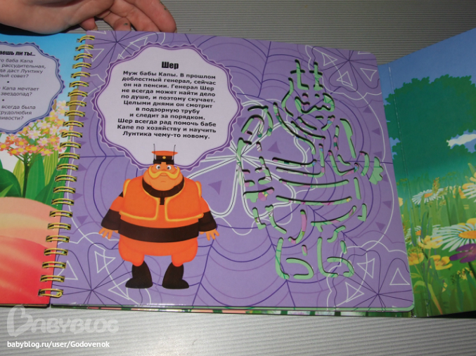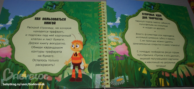 Книги достаточно большие (21*24), я почему-то при заказе думала, что они будут меньше. Странички плотные. На каждой странице краткий рассказ о персонаже, его изображение, и его же трафарет. Понравилось, что есть трафареты не только основных персонажей, но и многих второстепенных.