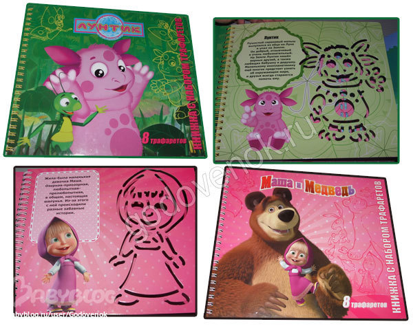 Книги с трафаретами "Лунтик", " Маша и медведь"
