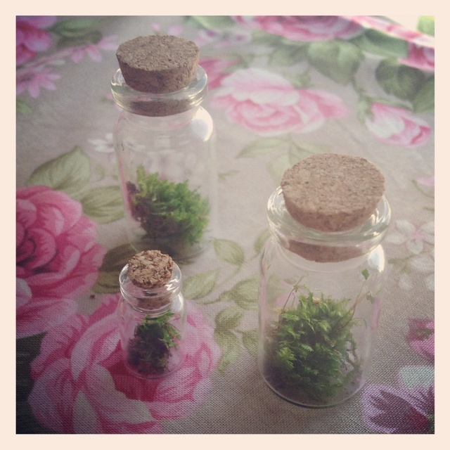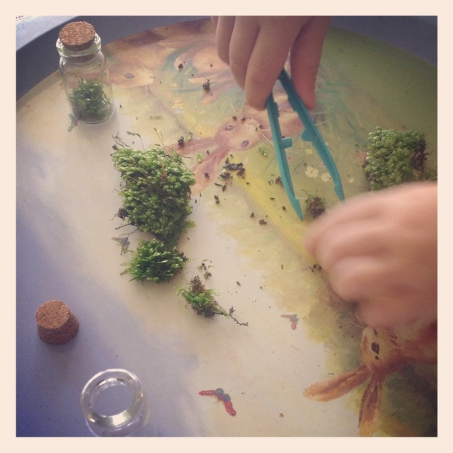 А сегодня утром мы вот что смастерили - посадили в бутылочки мох, собранный вчера в лесу.