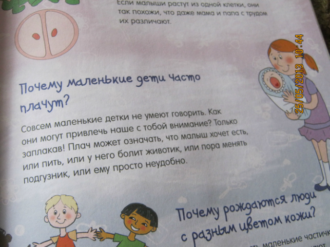 Плюсом также считаю,что авторы издания считаю, что авторы русские. Чувствуется русский менталитет.В переводных изданиях этого нет.Есть вопросы о России, а также о безпасности и культуре, например, почему нельзя уходить с незнакомцами или почему надо бросать мусор в урну.