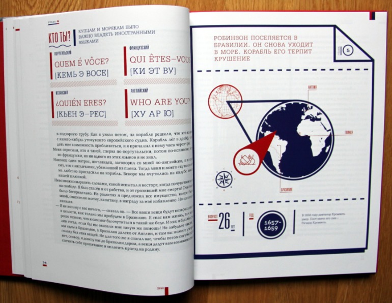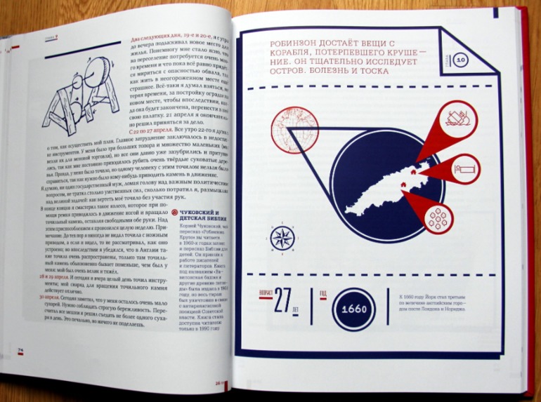 - с правой стороны книги отмечено примерное время пребывания Робинзона на острове,