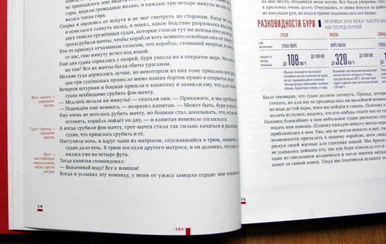 Встречалась с мнением, что вставки отвлекают от сюжета. Честно говоря, не очень себе это представляю, хотя понимаю, что дети, наверное, разные бывают. Но меня, когда сюжет увлекает, уже ничего не отвлечёт. При этом в детстве я регулярно заглядывала в примечания в конце книги, хотя это было гораздо неудобнее. Иногда ленилась, конечно, и папа меня на эту тему слегка задирал - мол, читаешь, а сколько это - миля или фут - не понимаешь :) В общем, мне бы эти дополнения очень помогли. А разная любопытная информация там и правда любопытная - я бы с удовольствием её изучала. И ещё мне кажется, что она довольно аккуратно сделана, и от основной части при чтении отвлекаешься, только если хочешь отвлечься. А вот моего брата, который класса до 11 читал в основном энциклопедии и почти никакой художественной литературы, такая книга, возможно, и к сюжетному содержанию привлекла бы. Собственно, я сначала и собиралась эту книгу подарить такому же по типу мальчику - подруга спрашивала, чего бы подсунуть сыну, чтобы заинтересовать не только энциклопедиями, но, чувствую, придётся какой-нибудь следующей акции дожидаться и второй экземпляр закупать, потому что уж не знаю, о чём будет грезить мой сын, но мне эту книжку выпускать из рук не хочется категорически :))