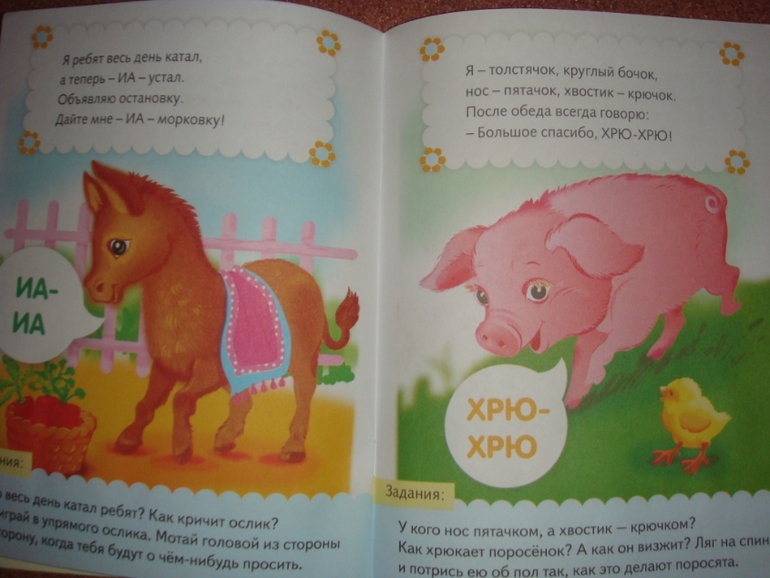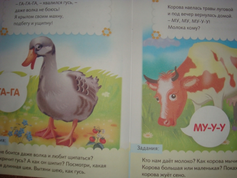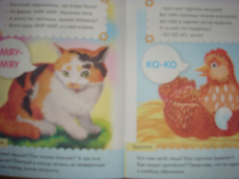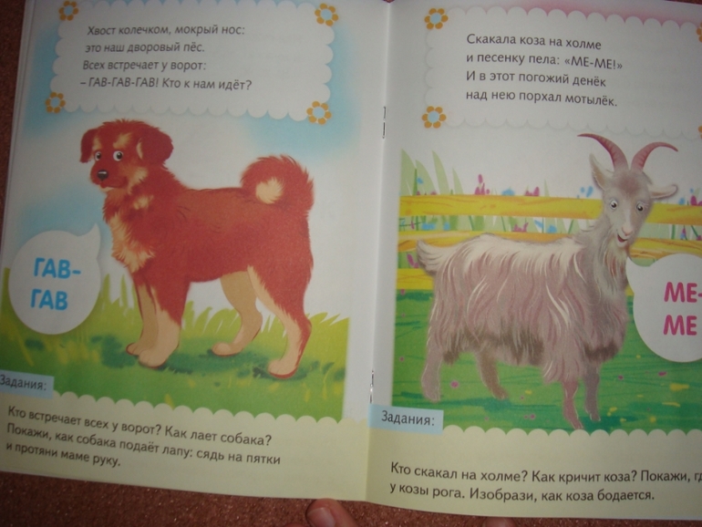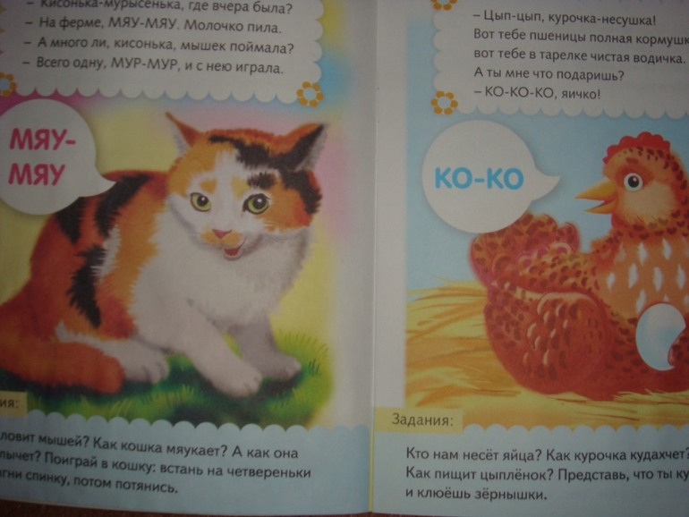 ...Книжка на вызывание звукоподражаний.м Красочная картинка и стишок. А внизу странички - задание. За свою цену очень милая книжица.