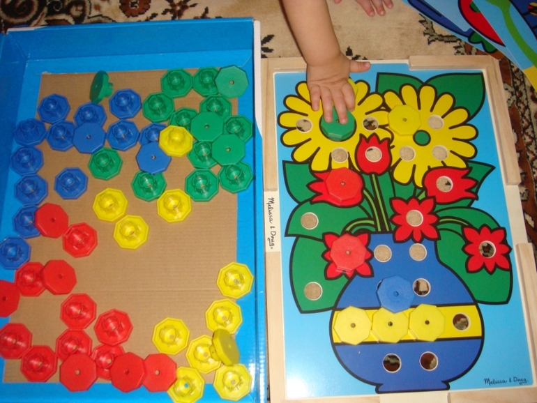 Фишки диаметром 3.5 см. Я в восторге. Изучаем с дочкой цвета. Учимся вставлять фишки в дырочки.