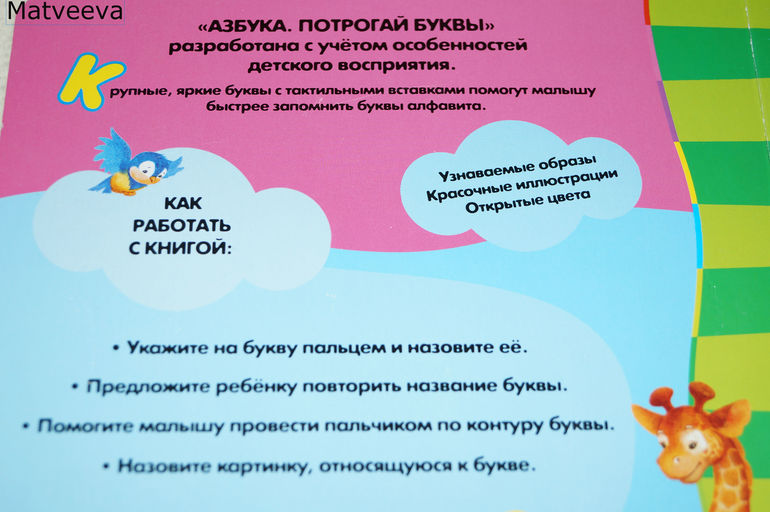 Сами буквы с тактильными элементами)) они трех видов: бархатные, гладкие и шершавые))