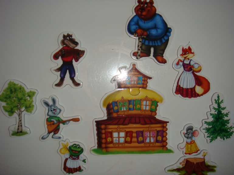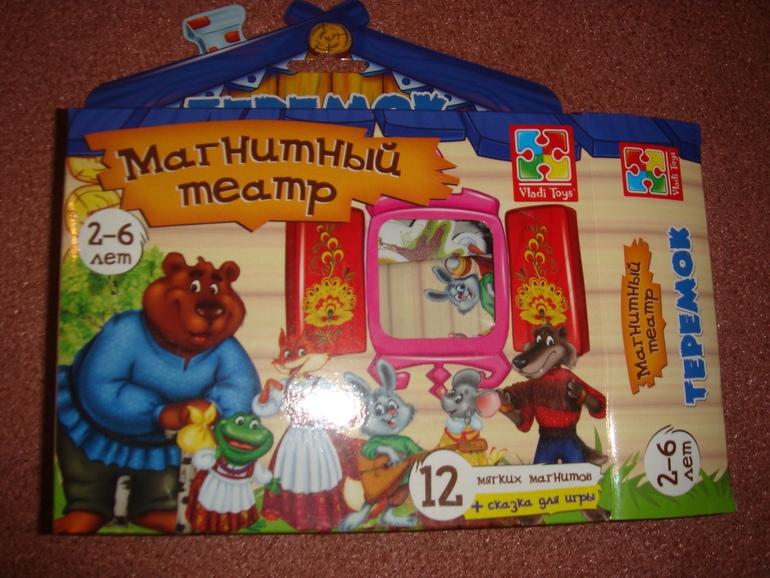 Очень хороший набор для малыша даже от 1,5 лет! У нас есть магнитная доска, на ней и разыгрываем сказку.А потом Лиза любит сама прикреплять и снимать персонажей. Магнитики мягкие и яркие. Сам теремок состоит из 3 частей, можно еще и пазл собрать!