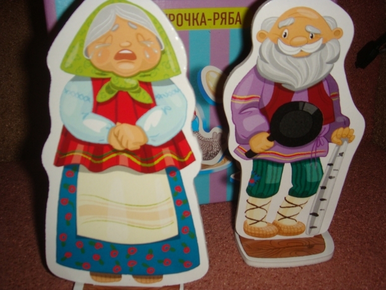 Очень интересный театр. Все герои вырублены из какого-то мягкого материала, приятные на ощупь. Приятно удивил размер. (Дед примерно 18 см.) Герои двусторонние. Дочке очень нравится, когда я показываю эту сказку. Она подражает как дед и баба плачут, как дед бил-бил...Конечно наедине с театром ребенка пока не оставишь, иначе сгрызет