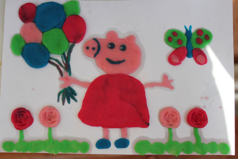 Ой, как здорово!!! Мне так понравилось! У нас покупное тесто для лепки, вот когда засохнет, тоже сделаем!!! ))) А это на картинке у тебя, наверное, свинка Пеппа?! )))