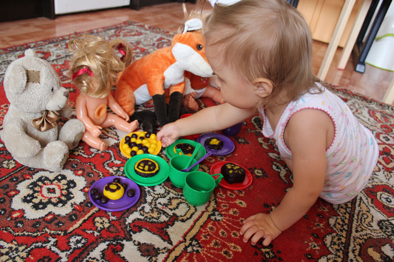 Как только Варя научилась говорить слово "торт", сразу стали устраивать чаепития для кукол. Вот одно из...лимонно-черничные лакомства.