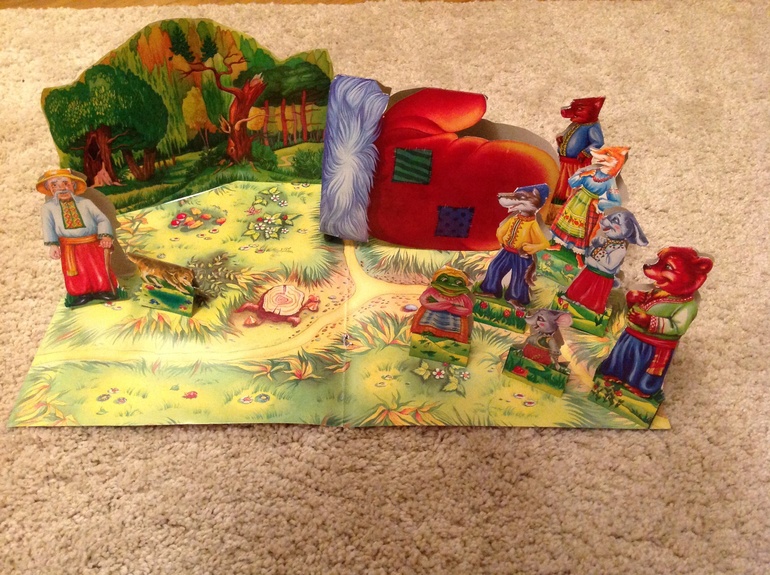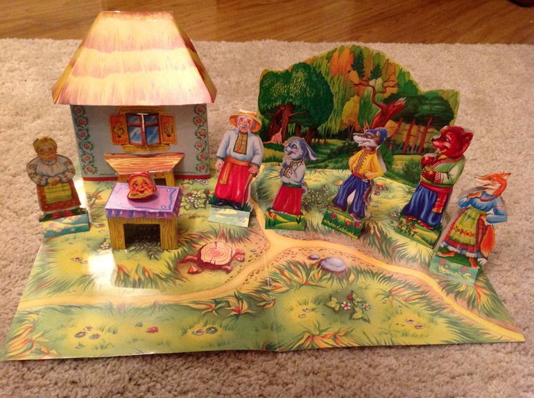 Это наш первый театр, наша первая любимая сказка. Я все пыталась ребенка заинтересовать сказками, и это получилось именно с этим набором. Смело могу его порекомендовать. У ребенка к нему до сих пор есть интерес. Все фигурки сделаны из дерева и сзади на магнитах.