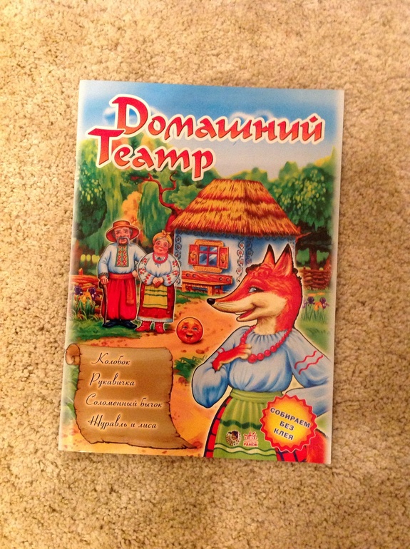 Но на все сказки таких наборов не купишь. А моему юному слушателю требовалось хлеба и зрелищ. Поэтому нашелся другой выход. Это серия "Домашний театр". В ней даны картонные заготовки всех необходимых действующих лиц , сами сказки в лицах и даже английский вариант каждой сказки!!