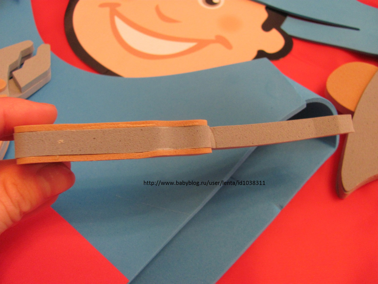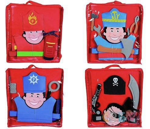 В серии 4 набора - пират, полицейский, строитель, пожарный. Материал - вспененный полимер (фирма бомик изготавливает разные шнуровки и прочее из такого материала)