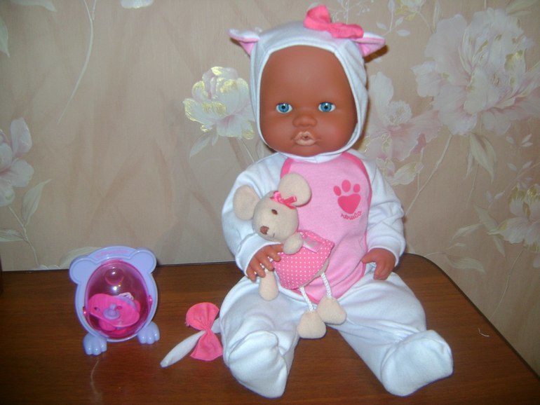 В комплект с куклой входит мазь,разноцветные лейкопластыри,подгузник и поильник