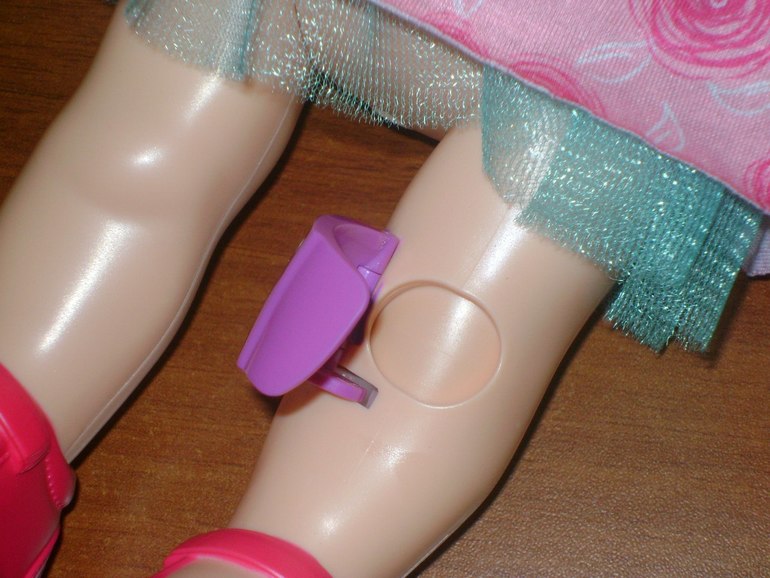 Под лейкопластырем на ножке у куклы появилась ранка в форме сердечка-мажем волшебной мазью и ранка уменьшается "на глазах" и исчезает)Куклу можно поить водой и она будет писать
