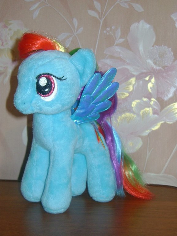 И прихватили еще с собой вот такую мягкую пони Радугу-очень красивая игрушка,глазки и радуга на попе вышиты