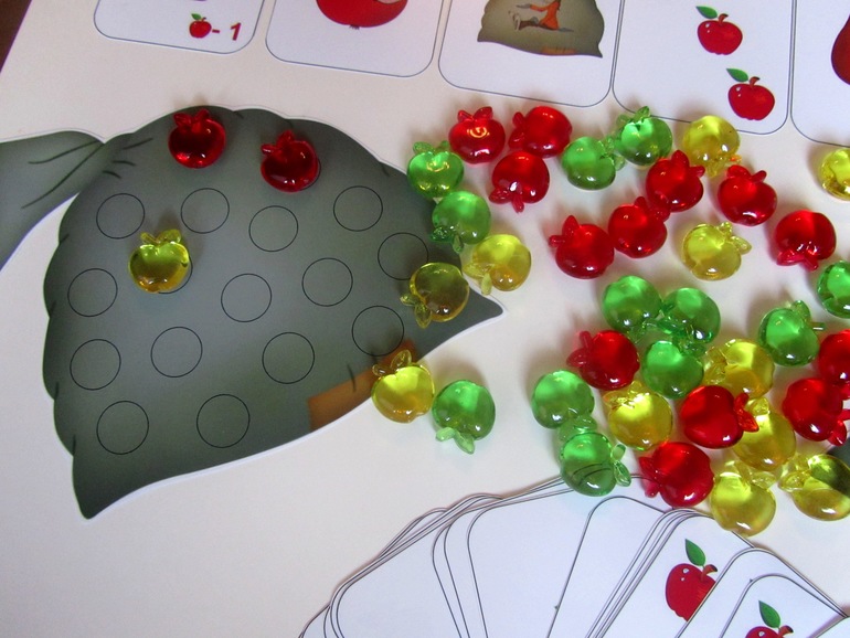 но "на пути"нам встречаются разные сказочные персонажи, которые тоже не прочь полакомиться яблочками, угощаем и убираем со своего мешка указанное количество яблок