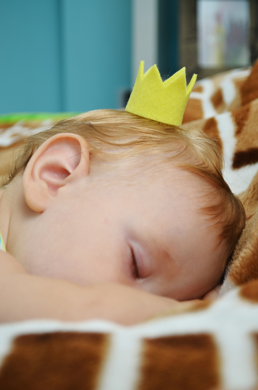 Пока Маркунька спал вырезала из фетра на скорую руку корону и сделала его маленьким принцем))) Первый раз за год удалось сфотографировать спящего ребятенка.