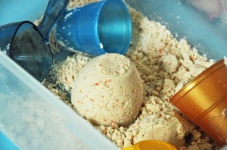 Я брала растительное, поэтому масса вышла желтоватой ( что ничуть не повлияло на увлеченность игрой)