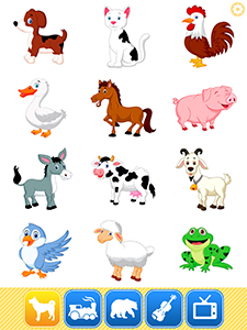 Приложение включает огромное количество интерактивных карточек в 5 основных и дополнительных категориях: животные, музыкальные инструменты, транспортные средства и другие.![]()