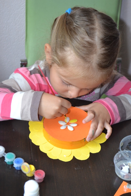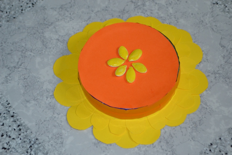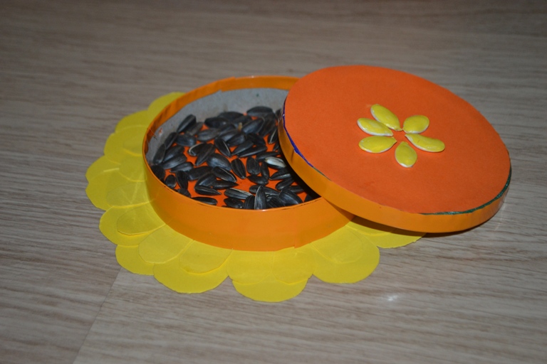 Закрываем коробочку крышкой. Это еще не созревшей подсолнух