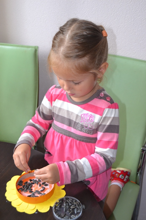 Рассказала, что семечки очень вкусные и полезные. Если семечки положить под пресс, то из них выдавиться масло, оно называется подсолнечным. Так что подсолнух не только красивые, но и очень нужный цветок.