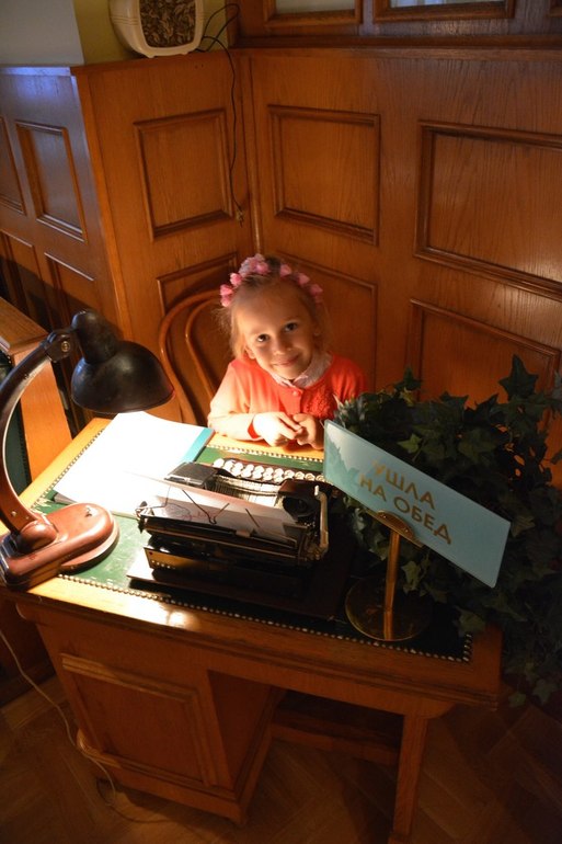 Он состоит из нескольких залов, каждый из которых выполнен с духом эры советских времен и каждый из них рассказывает свою историю. Это может быть и министерская библиотека с собранием трудов Энгельса и Ленина...и Зал заседаний с алыми ковровыми дорожками, а в этот раз мы попали в секретариат...