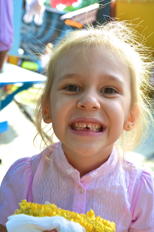 И тут переходим ко второй части моего рассказа про наш выходной... Помимо ваты папа купил нам кукурузу, которую все мы очень любим... И Даша конечно тоже стала кушать солененькое лакомство со своим шатающимся передним зубом... И тут "Мам ой что это, кровь на кукурузе" ... Да да так мы потеряли второй свой зуб причем в прямом смысле этого слова потому что он не был обнаружен или упал или проглотила она его... Даша стала переживать как же так зубная фея не принесет ей подарок теперь если она не положит ей свой зубик... Но дети верят и должны верить в чудеса и сказку поэтому я ей рассказала что это именно фея подхватила ее зубик и забрала себе поэтому мы его не нашли и что обязательно ночью принесет подарочек за него... (так и случилось;))
