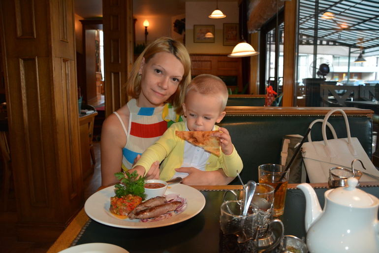 Вот на этом закончилась наша прогулка, но детки проголодались, а домой не хотелось поэтому папа повез нас в ресторан... Главпивторг... Нет не подумайте это не пивнушка, это очень красивый ресторанчик в центре Москвы, но войдя в него вы возвращаетесь назад в прошлое в атмосферу 60-80гг... ,