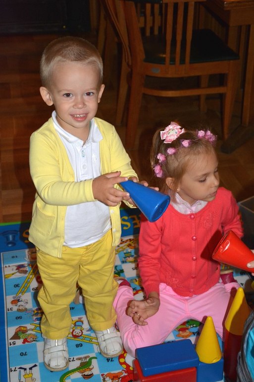 Ну наши малыши немного поклевали из своего детского меню и у нас немного похватали... А им еще сразу принесли конфеты "Губы" на палочки и раскраски с карандашами пока мы ожидали заказ ... А потом заботливая девушка принесла еще много игрушек и еще семья с мальчиком пришла чуть младше Темки так что им было весело...