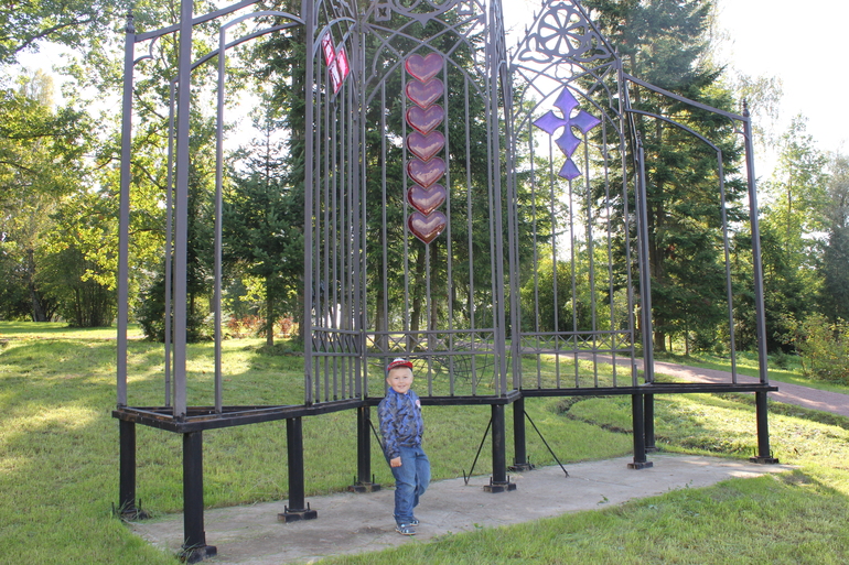 Славуша замочки рассматривал. Их там много...Одну свадьбу встретили... Видимо они как раз оттуда недавно ушли... Славик с новым замочком....