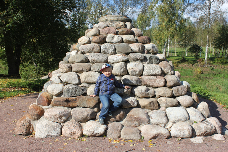 Башня из камней. Славик все порывался наверх залезть...