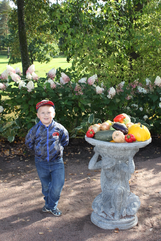 Дальше опять отправились к усадьбе. Было жалко, что не смогли посетить сад роз. Он почему-то был закрыт... Около усадьбы стоят вазоны с натуральными овощами... Очень удивились...