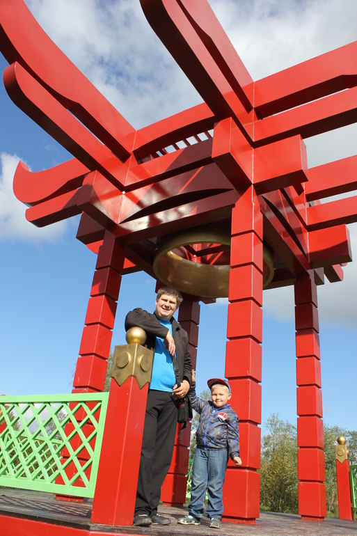 Если честно, страшно было.... Там такие перила низкие... Боялась за Славика... Но красиво... Погуляли по нему...