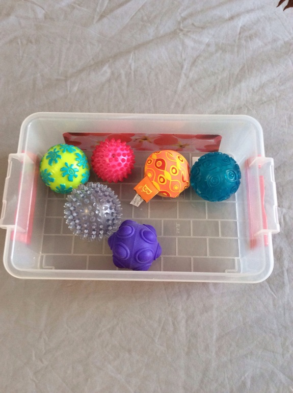 Ощупывали мячики, катали их по разным частым тела, называя их. Катя по просьбе моей доставала по одному мячику, потом я ей отдавала по мячику, а она скрадывала обратно в коробку. Повторили понятия "пустой", "полный". Рассказала о форме мячиков. Катали друг другу, бросали. Переворачивали коробку с мячами и наблюдали, как они укатываются в разные стороны. Искали и снова собирали в коробку. Играли на перевёрнутой коробке как на барабане. Закручивали мячики как волчки.