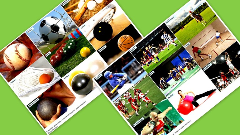 Вот и готов наш еще один комплект! В этот раз меня потянуло в спорт и родилась такая идея - сделать небольшую подборку с мячами и видами спорта, где они используются, получилось своеобразное лото! Итак, что же вышло, смотрите сами