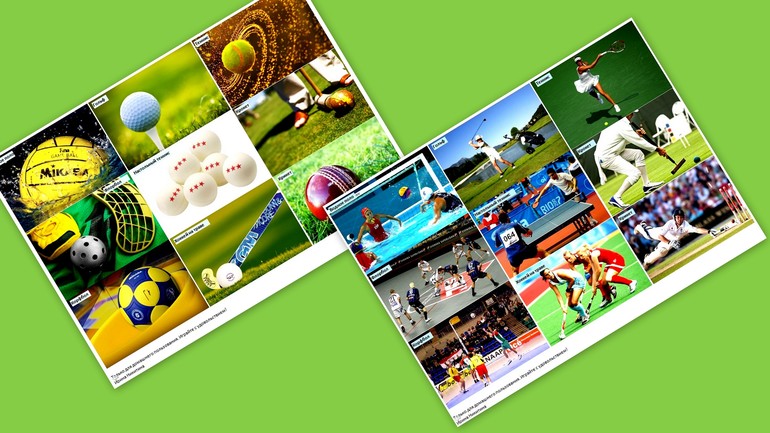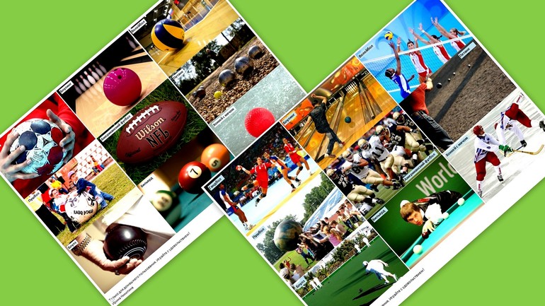 Эту подборку я распечатала дважды, мы используем её как лото, а также как фотомемори (так как есть много похожих мячей)