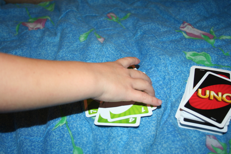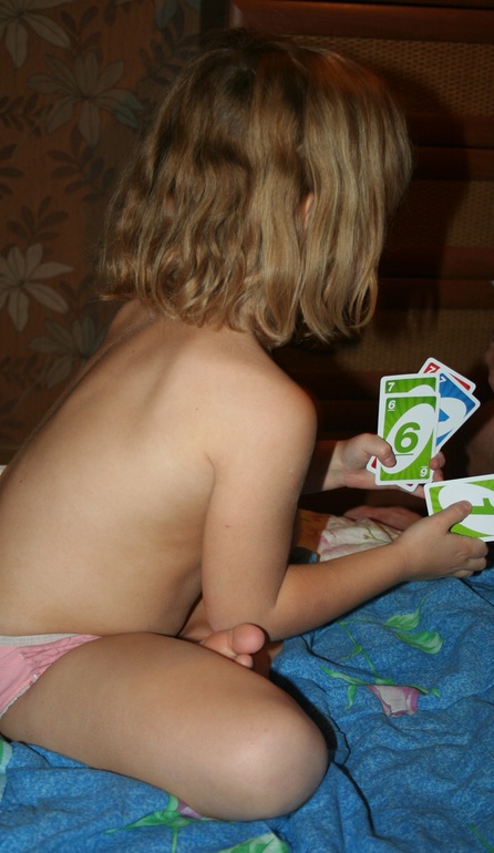 Все-таки сказывается большой игровой опыт :-) И хотя прятать карты от соперников она еще не умеет, фортуна Камика не обижает, и выигрывает она очень часто, и в этом большая прелесть UNO. Здесь не все решает хитрость и стратегия, а очень многое - случай и удача! Естественно дочке очень нравится побеждать, но и проигрывает она достойно. Ведь здесь главное не результат, а увлекательный процесс, и проигрыш всего лишь повод начать игру заново :-)