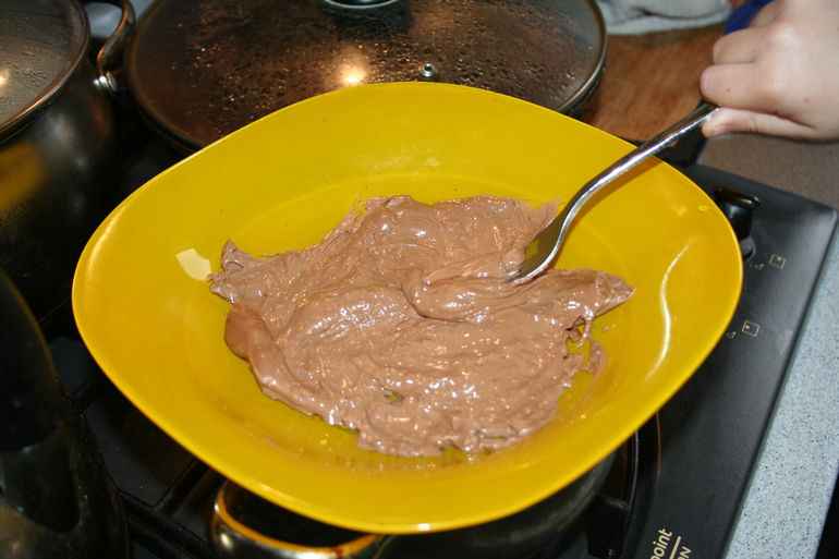 Очень быстро шоколад расплавился, и Камилла хорошенько его перемешала.