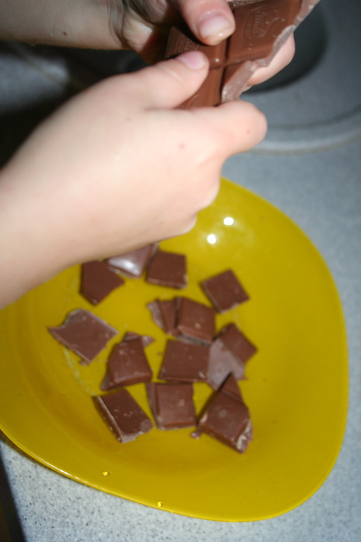Пока я замачивала курагу в воде и ставила на огонь воду для паровой ванны, Камилла ломала шоколад. Мы выбрали молочный!