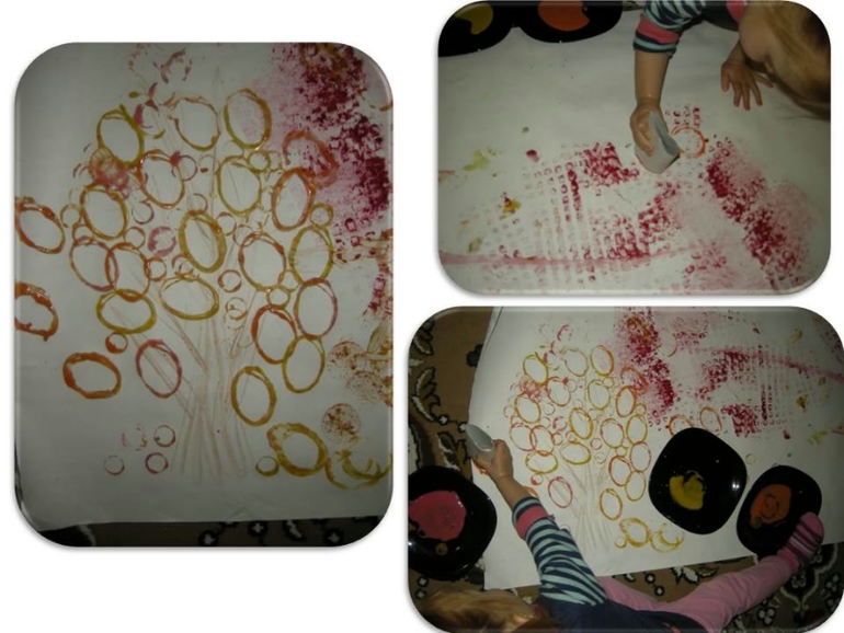 Начали с нового средства для рисования, Вика только увидела, сразу схватила и принялась рисовать и пока краску с этой тарелки не вырисовала не успокоилась))