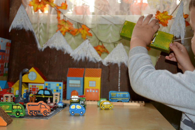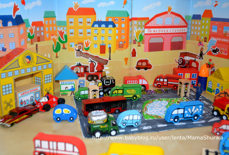 фон города от наклеек из фикс прайса, несколько деревянных машинок от туда же.