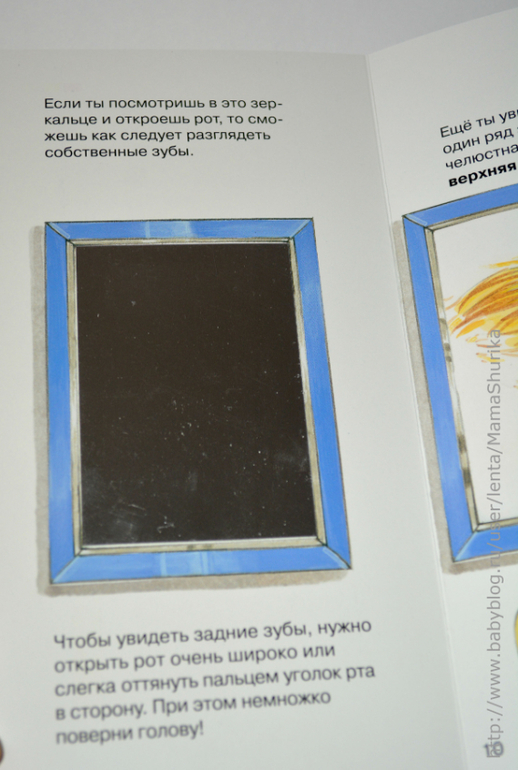 Вот пластиковое зеркальце, предлагают ребёнку рассмотреть свои зубки