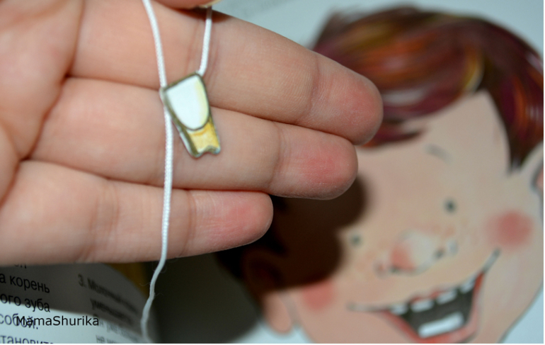 даже можно самому помочь вырвать зубик у мальчика, просто потянув за ниточку...
