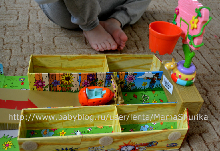 Устанавливается трек и баскетбольное кольцо и птичка когда разгоняется на машинке, то должна попасть в кольцо, ну я так поняла , у нас так и не получилось закинуть птичку в колечко, зато машина едет отлично:))