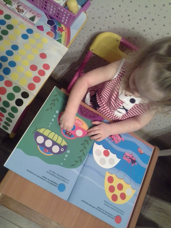 А потом я пошла готовить ужин, а Ульяна наклеила все оставшиеся кружочки на другие странички альбома, уже не транспортные.